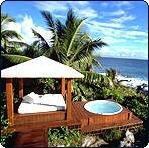 In the villa there is air conditioning and of course a CD-player, video recorder and private bar. For those guests who even in paradise do not want to be cut off from the outside world can have the use of a telephone and a fax machine. Every morning the room service ensures that there are fresh flowers and fruits in each room. The main restaurant in the central building of the enclosure offers a fantastic international gourmet menu, to be enjoyed with a stunning view of the Indian ocean. Daily breakfast is also served. In the Seychelles Plantation House, a renovated plant house, a gourmet can enjoy the original Creolian kitchen in a traditional atmosphere. For those who would prefer to dine in the privacy of their own villa can make use of the room service, which of course runs around the clock. A private plantation with vegetables and livestock ensure that only the freshest ingredients are used.